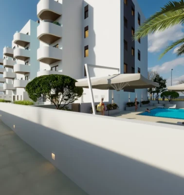 Residencial de 44 viviendas con plazas de aparcamiento, trasteros y piscina
